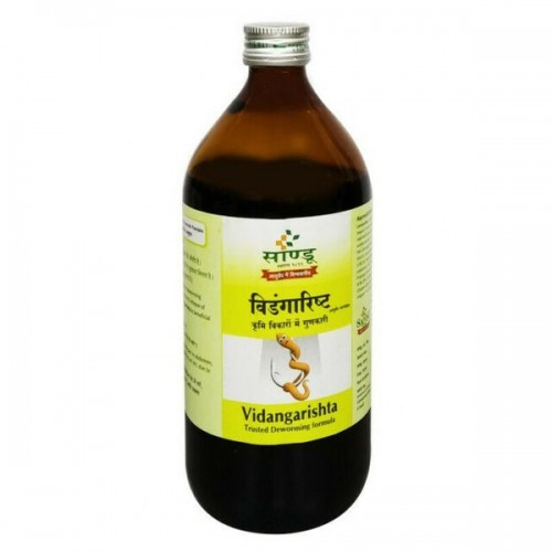 VIDANGARISHTA by SANDU is an ayurvedic classical preparation. Vidanga being key ingredient it is an herbal antihelminthic medicine to fight off worm infestation. It is also beneficial in the treatment of skin diseases and is a blood purifier